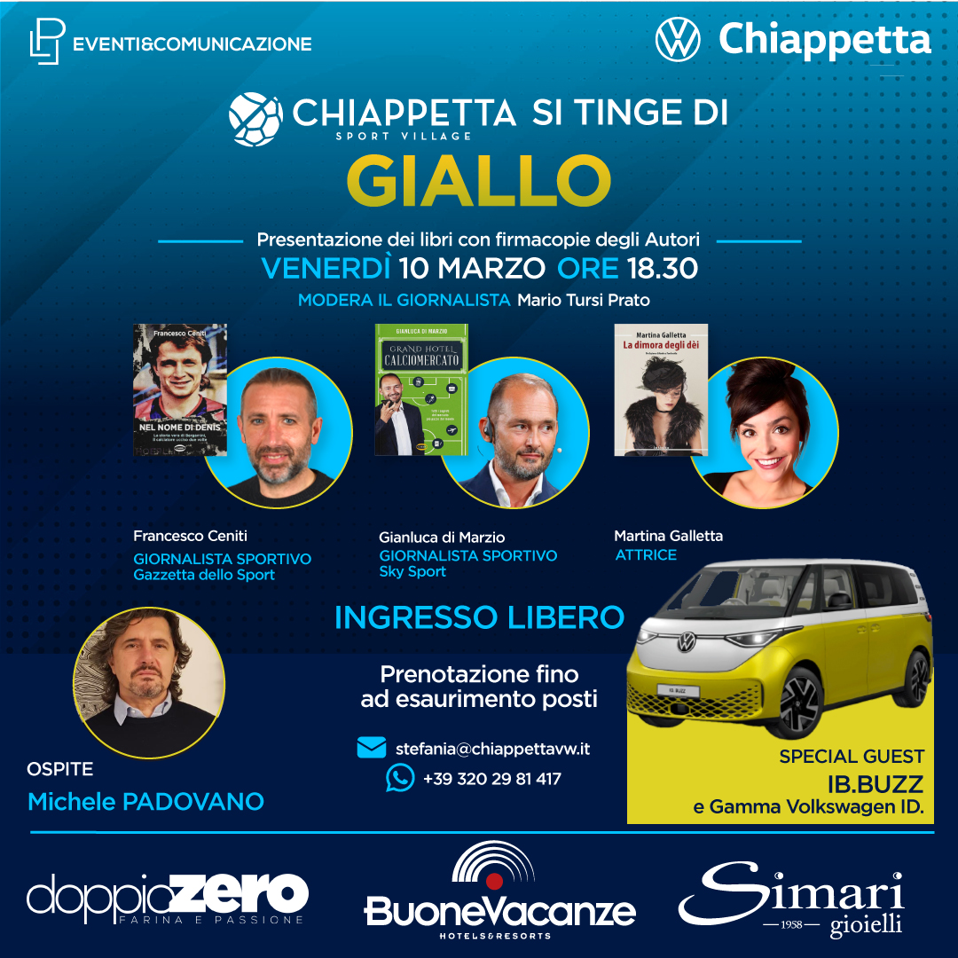 C’è un libro che narra una storia vera, quella del calciatore Donato Bergamini, la cui morte è avvolta in un alone di mistero, un vero e proprio giallo il cui finale non è stato ancora possibile scrivere. Poi c’è un altro libro, un romanzo, un altro giallo con omicidi, furti, amori discutibili e continui colpi di scena. Infine c’è ancora un libro in cui il protagonista alimenta quell’eterna illusione di comprare formule magiche capaci di orientare il destino di un mondo, quello del calcio. Ed è così che il “Chiappetta Sport Village si tinge di…giallo”. È questo il titolo di un evento, organizzato da Volkswagen Chiappetta e curato dall’event manager Luigi Le Piane, che andrà in scena venerdì 10 marzo, alle 18,30, al Chiappetta sport village, appunto, di Rende, e che registrerà la partecipazione di tre scrittori coi rispettivi libri: i giornalisti Francesco Ceniti, della “Gazzetta dello Sport”, e Gianluca di Marzio, di Sky, e l’attrice Martina Galletta. Tutti e tre accomunati da una sottile linea gialla. Ceniti è l’autore di “In nome di Denis”, il Bergamini calciatore scomparso prematuramente in circostanze ancora non chiarite. “Perché ‘In nome di Denis’? Perché solo l’amore di un genitore – dice il giornalista scrittore – può affrontare una battaglia lunga più di trent’anni, quasi disperata, una traversata nel deserto. Quella di Denis Bergamini è una storia che ci riguarda da vicino. Si può cambiare un finale già scritto? Basta – conclude Ceniti - non girarsi dall’altra parte, restando indifferenti”. Se il giallo di Ceniti muove da una drammatica storia vera, quello di Martina Galletta, dal titolo “La dimora degli dèi” è frutto di fantasia, per una vicenda che ha anche i tratti distintivi di un romanzo storico e i cui eventi si sviluppano mentre l’ombra nera del nazismo si allunga verso l’inizio della seconda guerra mondiale. “È un romanzo – dice Galletta - che attraversa molti generi, si va dal thriller al romanzo storico al giallo. Siamo nel 1938, e la protagonista, Britta, si trova in un remoto albergo tra Germania, Austria e Svizzera. Qui saranno tante le vicende che accadranno a Britta e agli altri ospiti”. E il colore giallo attraversa anche il volume di Gianluca di Marzio e del suo “Grand Hotel Calciomercato”. “Soldi, promesse rispettate e patti non mantenuti, trasferimenti che diventano affari di Stato e coinvolgono banche nazionali e presidenti del Consiglio ma anche calciatori che dicono «no» perché consigliati da…? Insomma – dice il giornalista di Sky – in questo libro vi svelo tantissimi retroscena di quel mondo parallelo che è quello del calcio”. Insieme ai tre scrittori, ci sarà un ospite illustre, Michele Padovano, già calciatore di, tra le altre, Cosenza e Juventus, e attaccante della Nazionale italiana di Cesare Maldini.